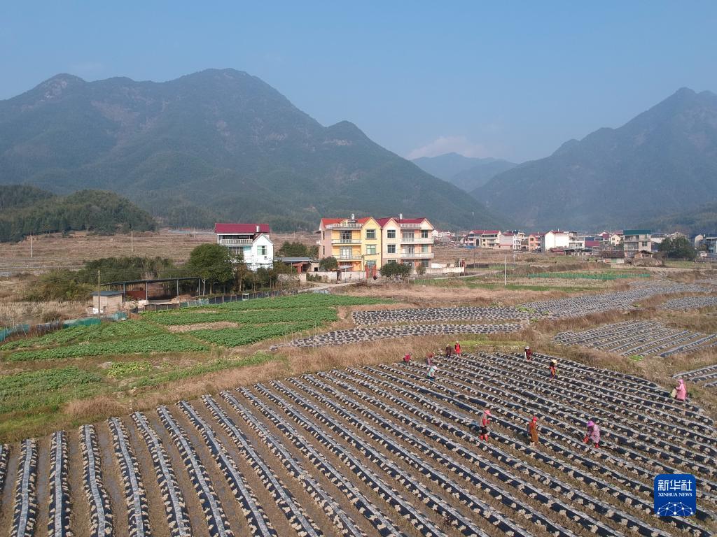 2月28日,在福建省南平市浦城縣仙陽鎮(zhèn)選源村,村民在田間作業(yè)(無人機(jī)照片)。