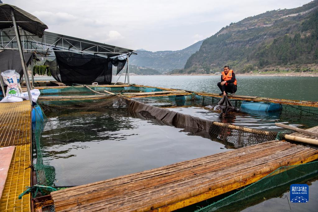 2月25日,三峽庫區(qū)珍稀魚類馴養(yǎng)基地工作人員在查看長江鱘的生長情況。