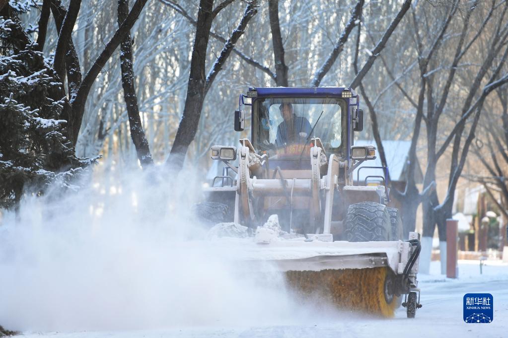 3月1日,除雪車在沈陽奧林匹克公園掃雪。
