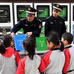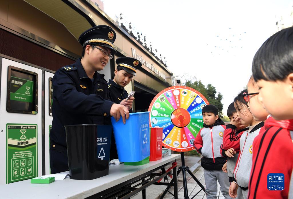 當(dāng)日,安徽省合肥市包河區(qū)淝南社區(qū)在轄區(qū)垃圾分類投放站開展“垃圾分類 從我做起”主題活動(dòng),通過垃圾分類互動(dòng)游戲,向社區(qū)居民推廣生活垃圾定時(shí)定點(diǎn)分類投放。