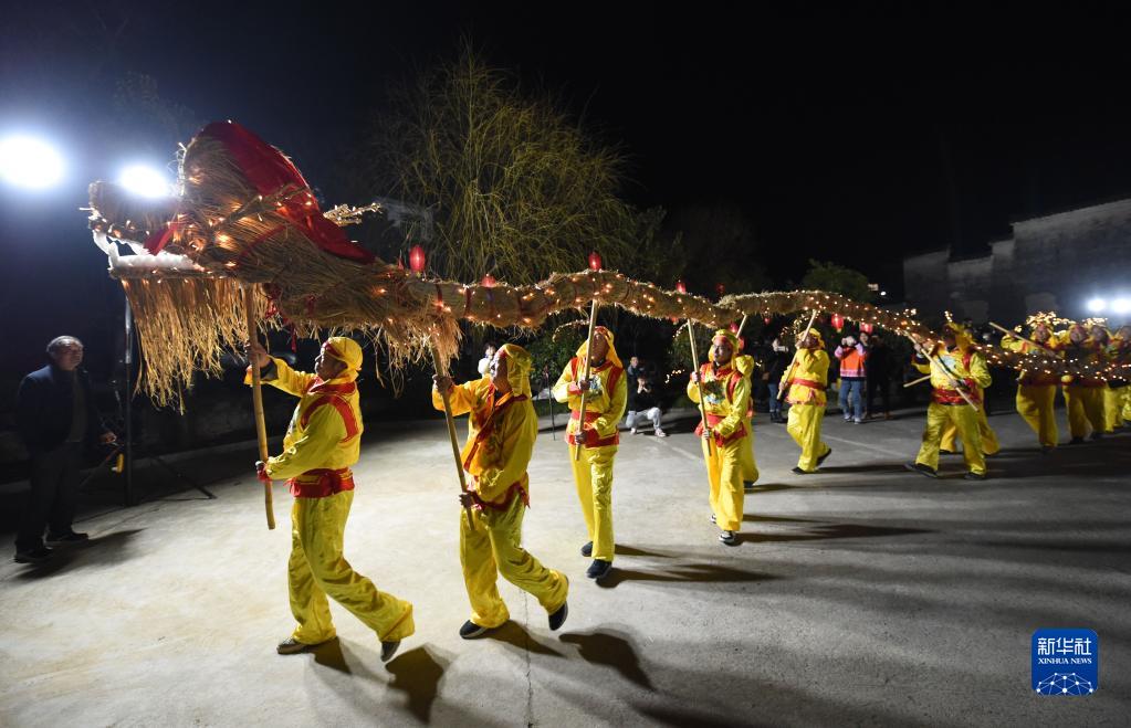 這是3月2日拍攝的黃山市徽州區(qū)蜀源村“舞草龍”活動(dòng)。