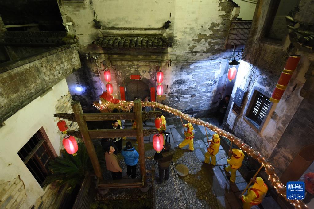 “舞草龍”是安徽省黃山市徽州區蜀源村特色民俗。在農歷二月二“龍抬頭”來臨之際,當地村民用稻草編織,輔以毛竹支架,制作長達10余米的草龍,龍身掛滿燈帶,在古村中巡游,祈求五谷豐登、風調雨順。