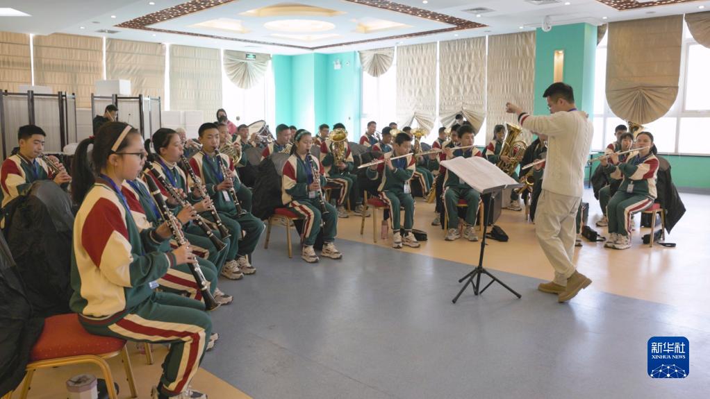 圖為在北京中國殘疾人體育運動管理中心宴會廳二樓,重慶市特殊教育中心揚帆管樂團參演團隊在進行排練(2月11日攝)。