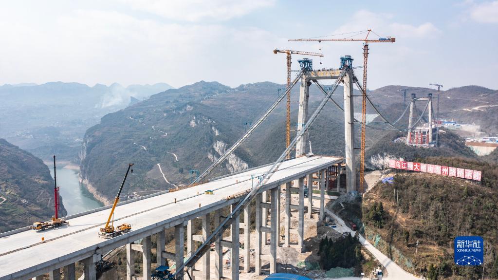 目前,由貴州路橋集團承建的金烽烏江大橋建設進展順利。金烽烏江大橋是貴陽經金沙至古藺(貴金古)高速公路項目的重要控制性工程,橋梁全長1473.5米,預計年底建成通車。