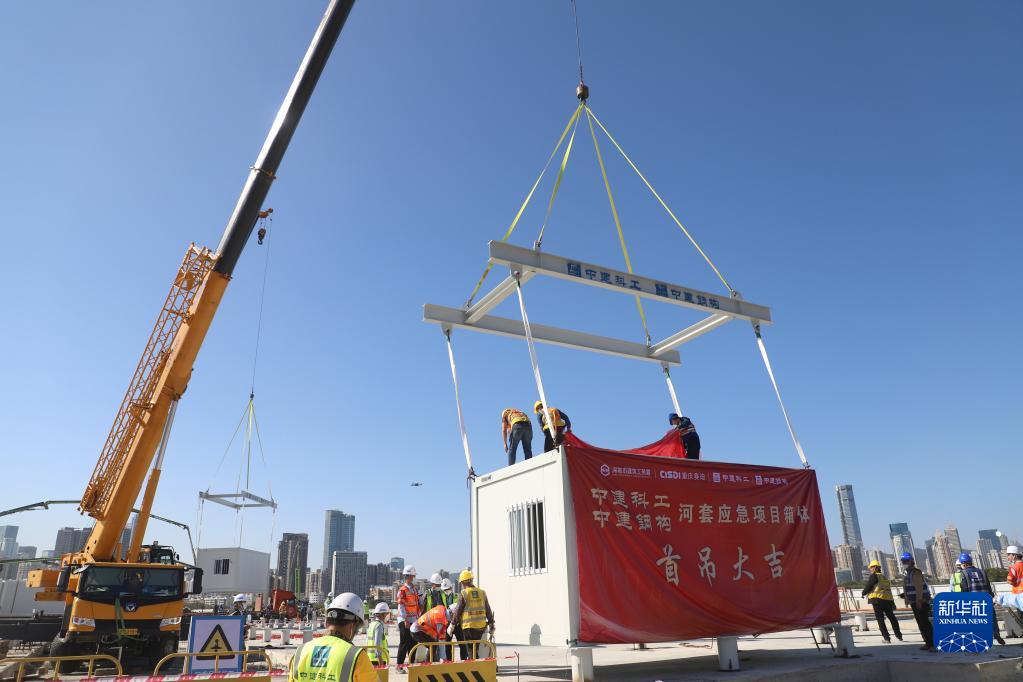 3月9日,中央援建香港應(yīng)急醫(yī)院項目首個集成式箱體吊裝施工現(xiàn)場。
