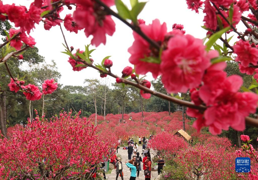 3月10日,人們?cè)趶V西南寧市青秀山公園賞花游玩。
