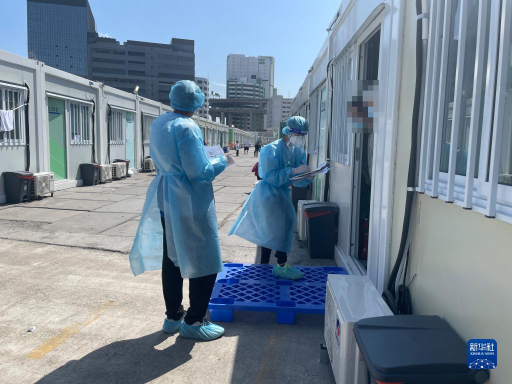 青衣方艙醫院工作人員上門服務(3月10日拍攝,手機照片)。