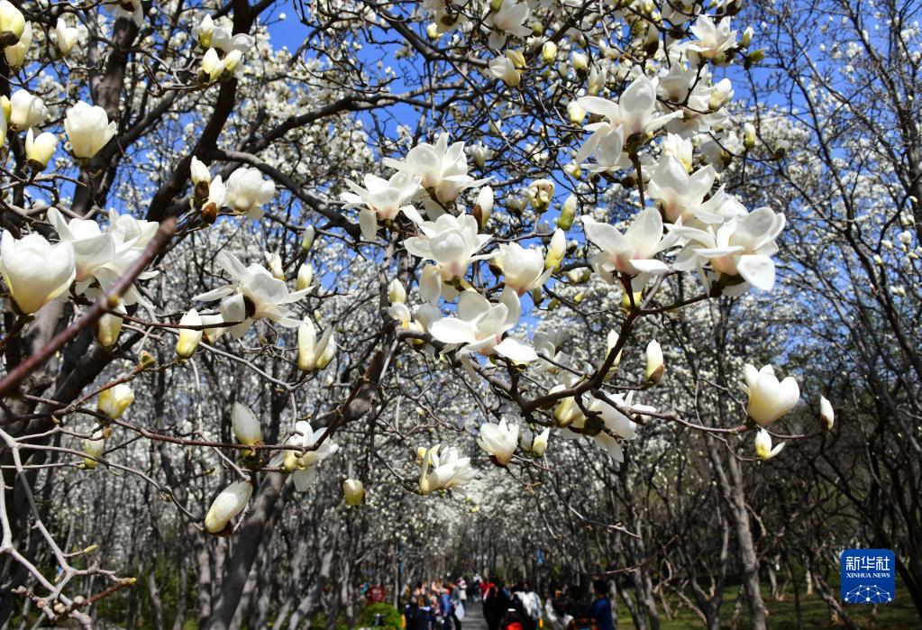 隨著氣溫上升,泉城濟南市區內各處玉蘭花大面積盛開,美不勝收。