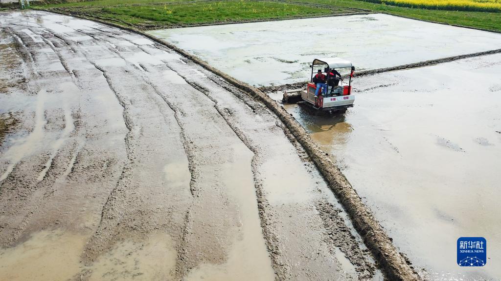 3月14日,在常德市桃源縣陬市鎮(zhèn)小馬山村,農(nóng)民學(xué)員練習(xí)操作農(nóng)機(jī)(無(wú)人機(jī)照片)。