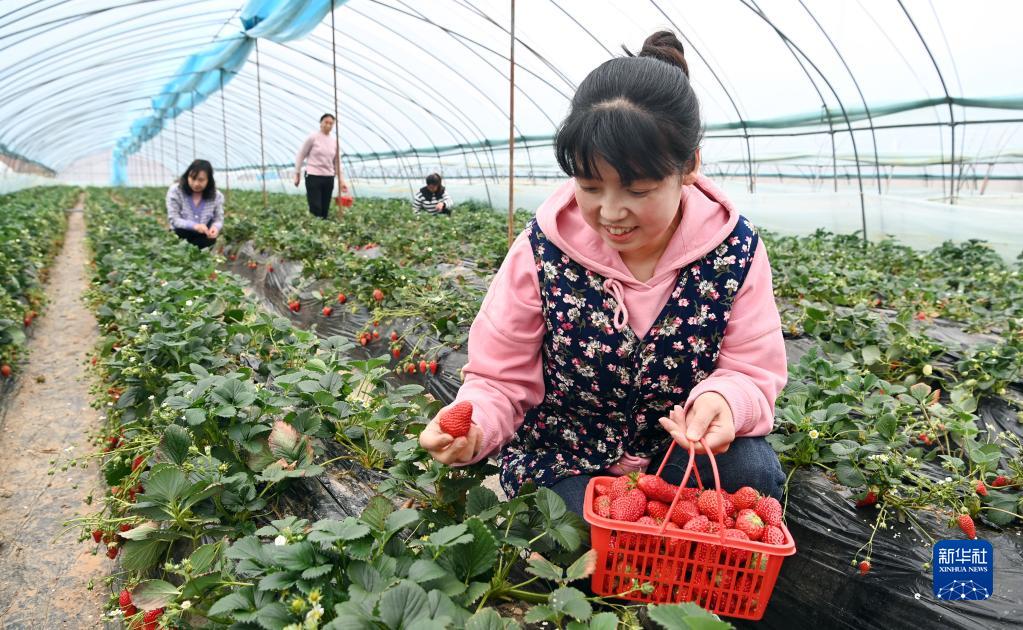 3月14日,游客在洛南縣永豐鎮體驗草莓采摘。