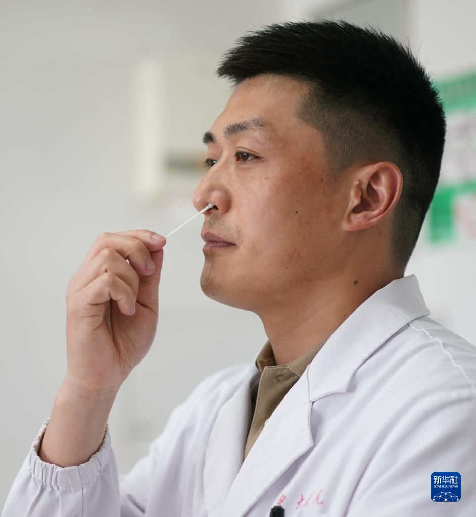3月15日,在東南大學(xué)附屬中大醫(yī)院,張臣進(jìn)行鼻拭子采樣。