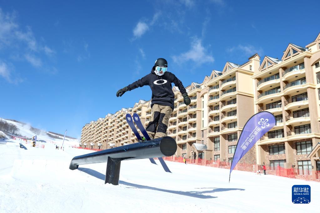 一名滑雪愛好者在云頂滑雪公園滑雪(2019年12月11日攝)。