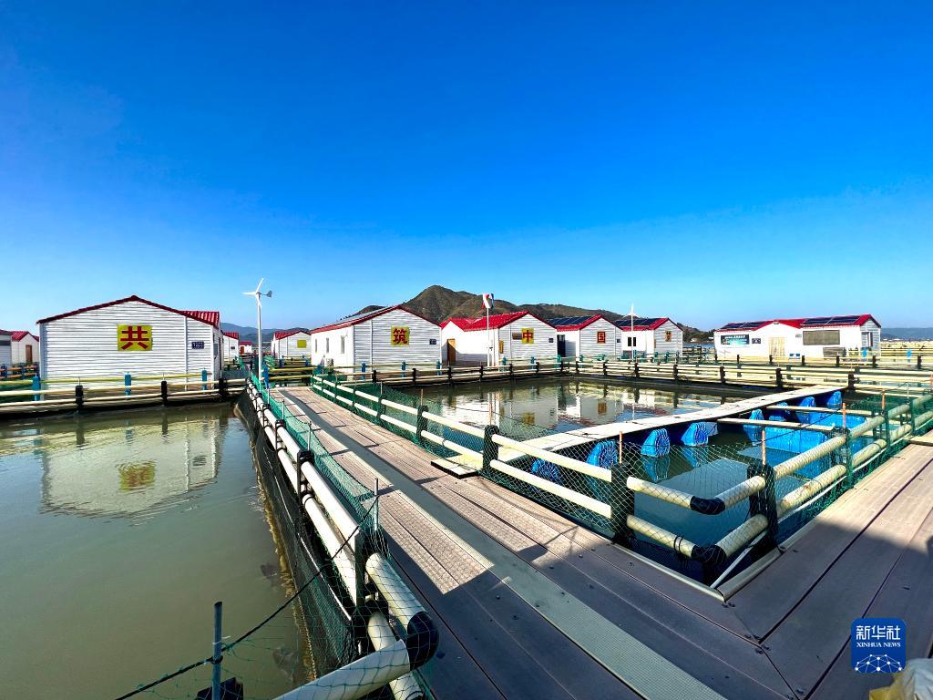 在福建省寧德市七星海域上,長(zhǎng)寬各18米的深水抗風(fēng)浪網(wǎng)箱后列著一排排整齊的漁排房(3月8日手機(jī)拍攝)。