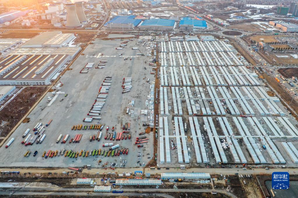 這是3月20日傍晚拍攝的吉林市高新南區隔離方艙建設現場(無人機照片)。