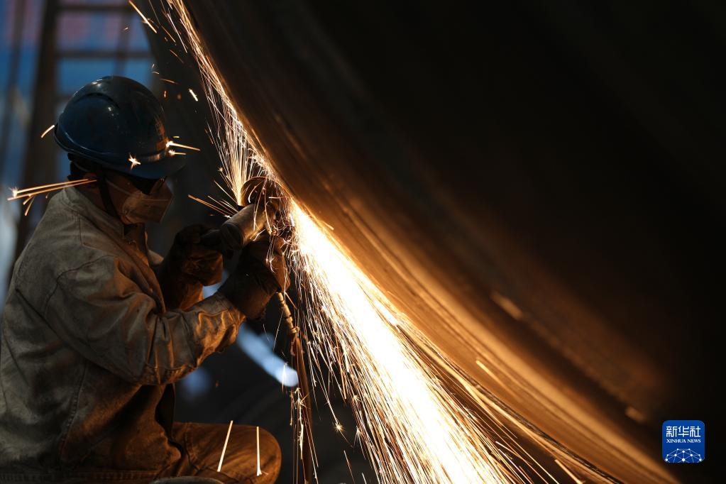 3月23日,工人在哈電集團哈爾濱鍋爐廠有限責任公司生產車間內進行焊接作業。