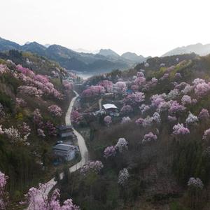 3月23日拍攝的江油市大康鎮(zhèn)戴天山村的辛夷花和民居(無人機(jī)照片)。