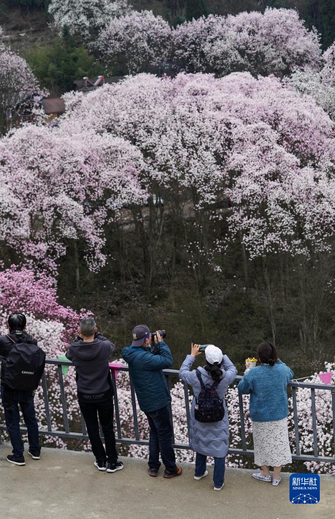 目前正是四川省江油市大康鎮(zhèn)戴天山村的辛夷花盛開的季節(jié)。這里的辛夷花在群山環(huán)抱中綿延數(shù)十里,呈現(xiàn)出一派世外桃源的景象,吸引游人前來踏青賞花。當?shù)氐霓r(nóng)家樂旅游接待、土特產(chǎn)銷售等“花經(jīng)濟”,促進了村民們增產(chǎn)增收。