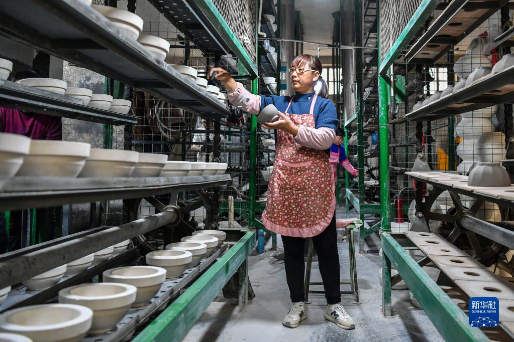 3月22日,在山西省陽城縣沙坡村,喬氏琺華日用瓷器生產車間的工人在忙碌。新華社記者 曹陽 攝