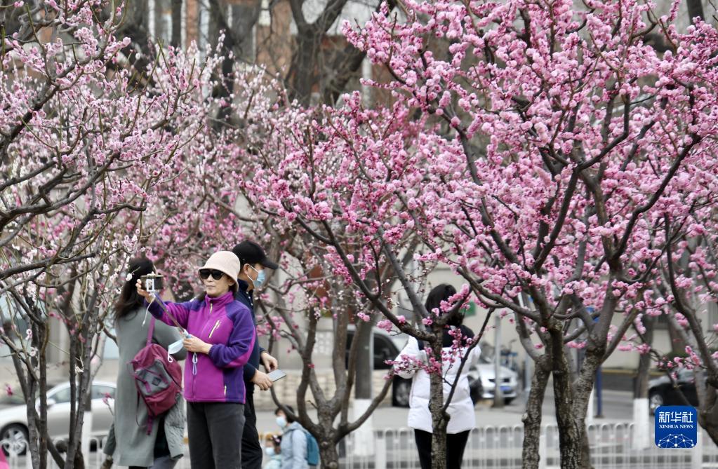 近期,北京市明城墻遺址公園內桃花盛開,吸引大批市民前來賞花踏青。