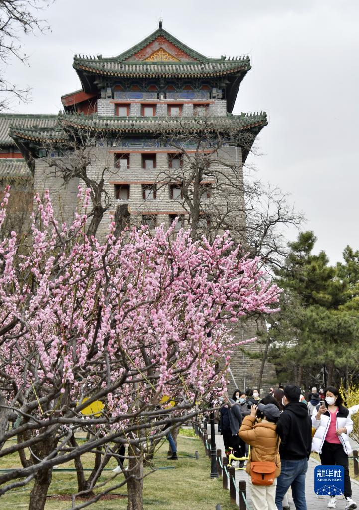 近期,北京市明城墻遺址公園內(nèi)桃花盛開,吸引大批市民前來賞花踏青。