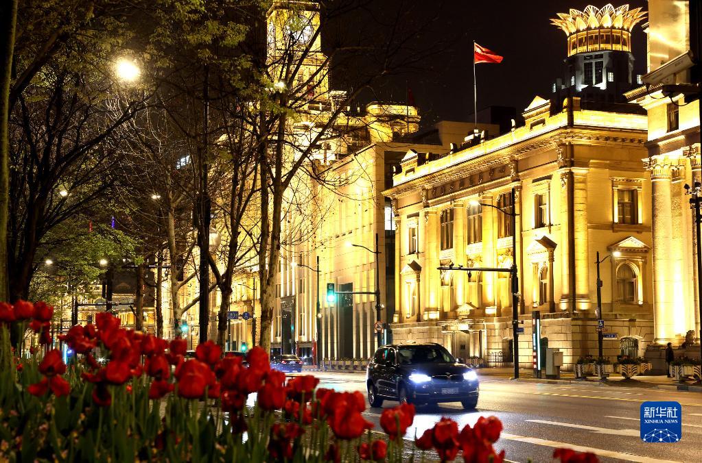 3月31日晚拍攝的上海市外灘街景。
