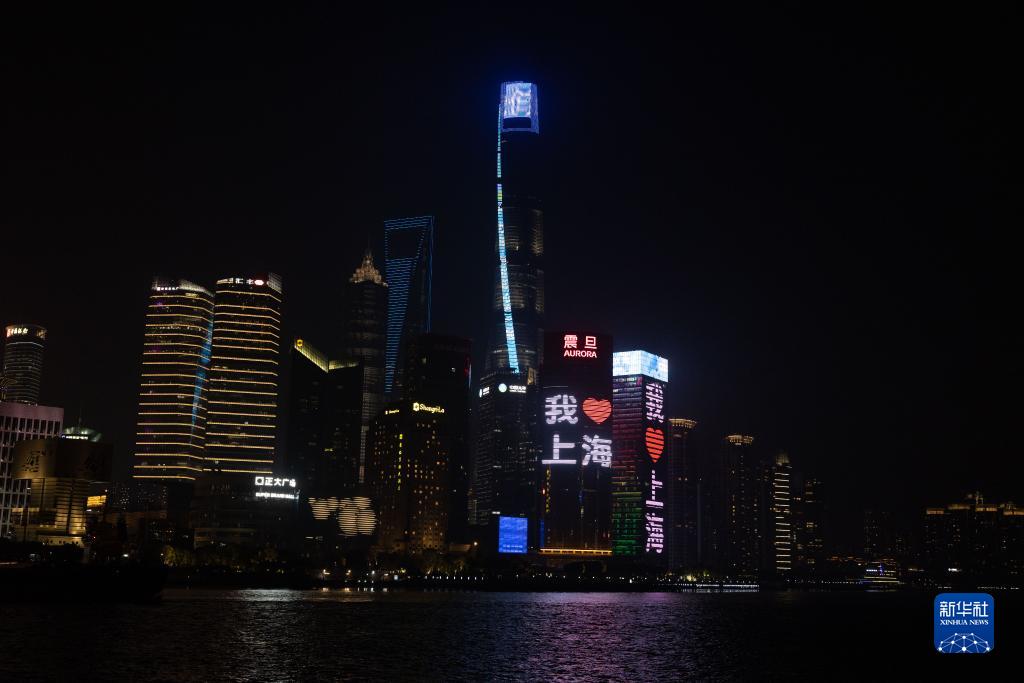 3月31日晚,上海外灘的大屏上顯示出“我愛上海”的標語。