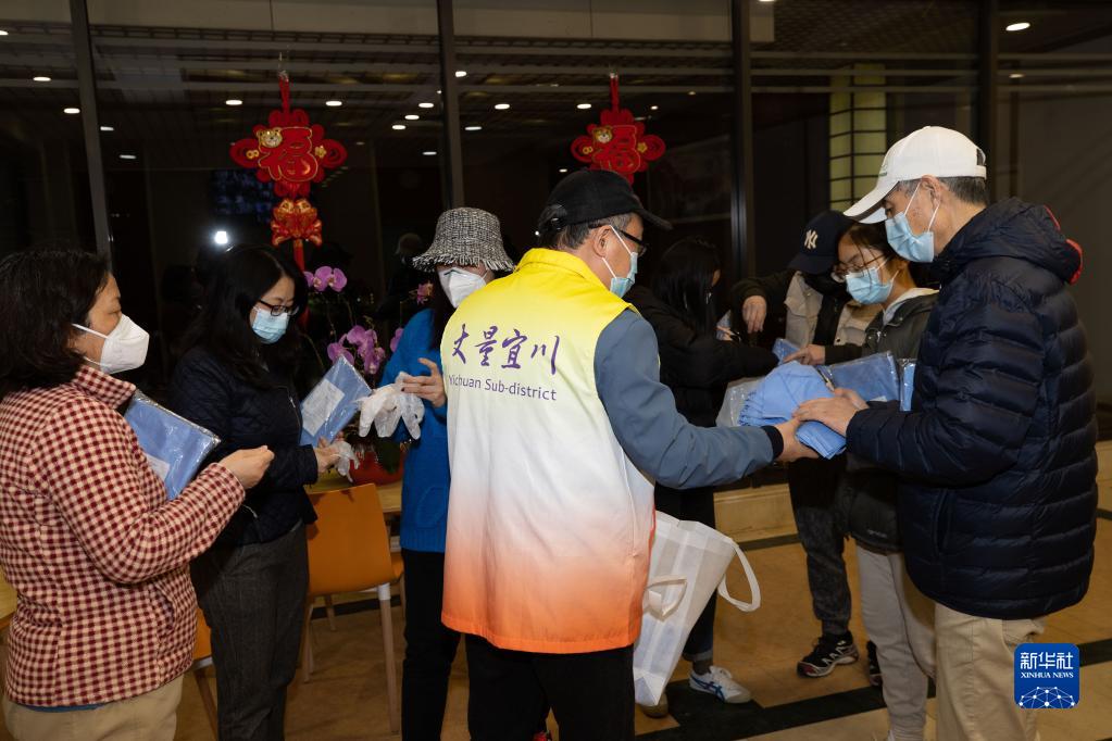 3月31日晚,在上海市中遠(yuǎn)兩灣城小區(qū),社區(qū)志愿者為第二天的核酸檢測(cè)做準(zhǔn)備。