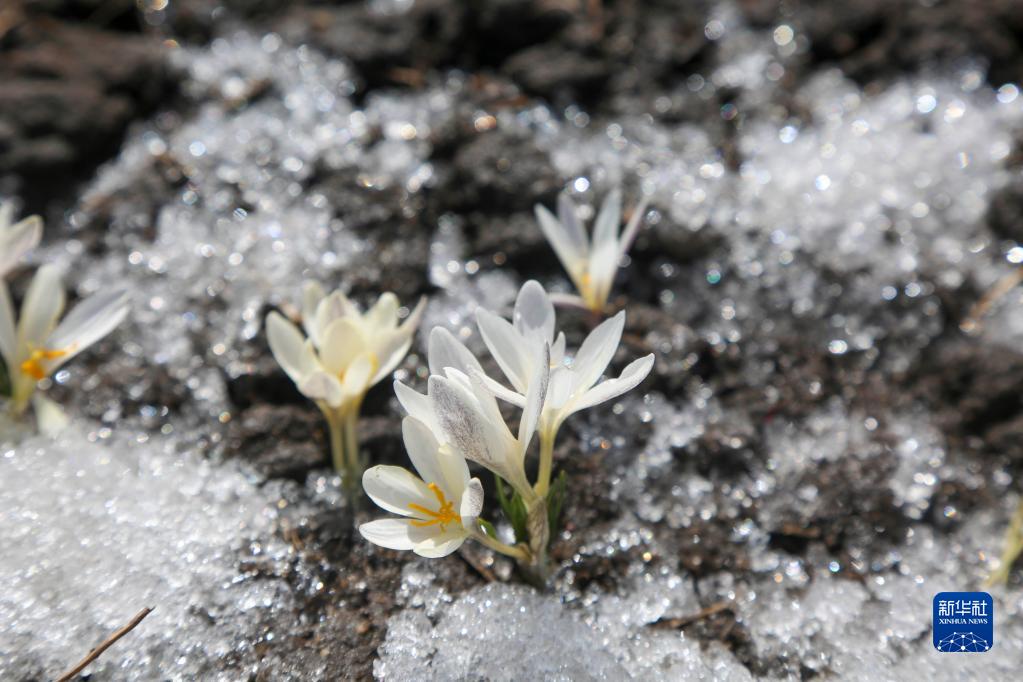進入4月,位于新疆伊犁河谷上的昭蘇草原積雪逐漸開始消融,頂冰花在涓涓雪水的滋養下悄然綻放。