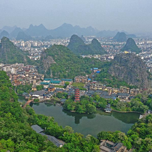春意日濃,廣西桂林市城區山清水碧,草木蔥蘢,一派宜人景色。