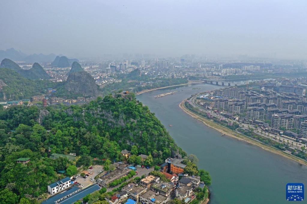 這是廣西桂林市城區(qū)景色(4月10日攝,無(wú)人機(jī)照片)。