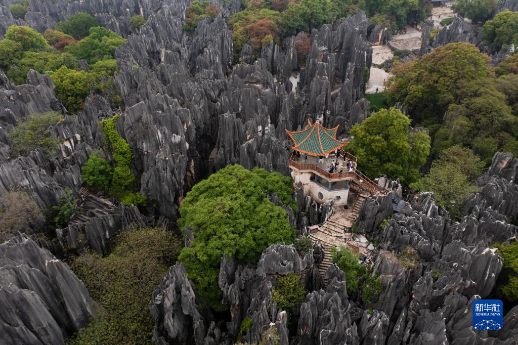 這是4月10日拍攝的大石林望峰亭(無人機照片)。