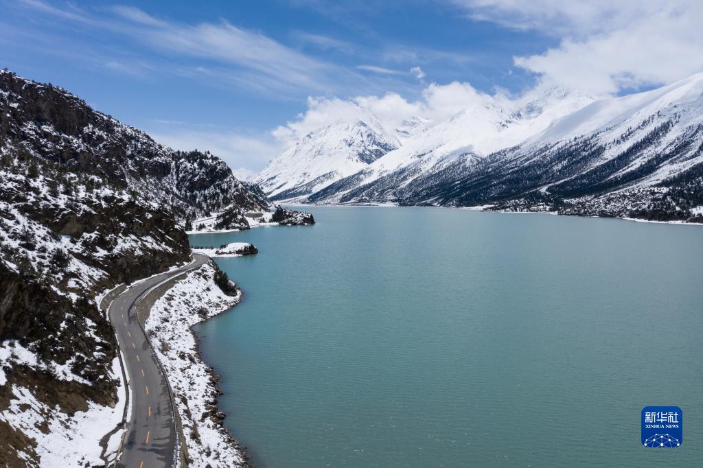 這是無人機拍攝的然烏湖(4月18日攝)。