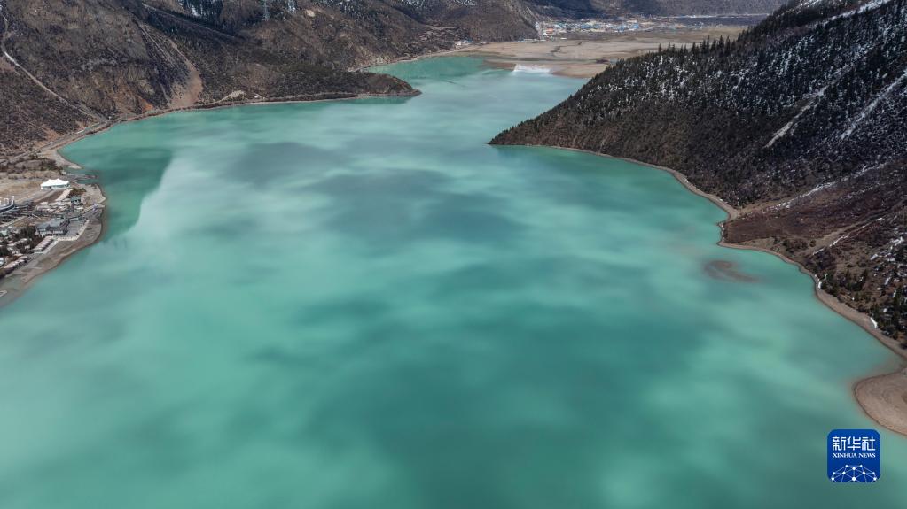 這是無人機拍攝的然烏湖(4月24日攝)。