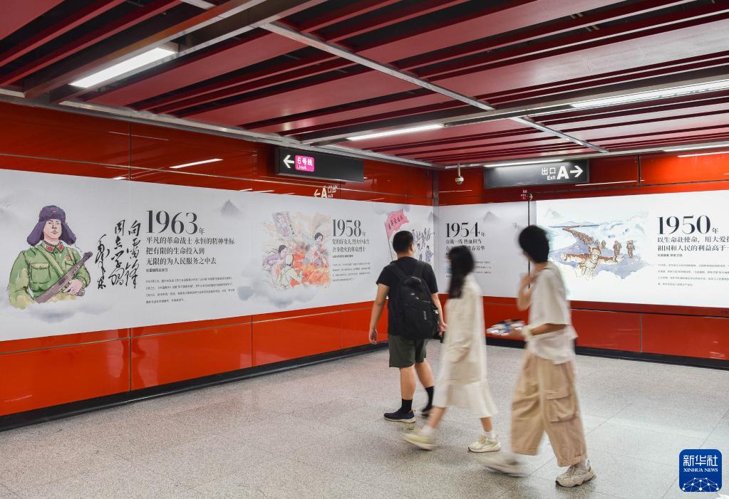 5月3日,乘客在廣州地鐵團一大廣場站內觀看“無奮斗不青春”主題宣傳。