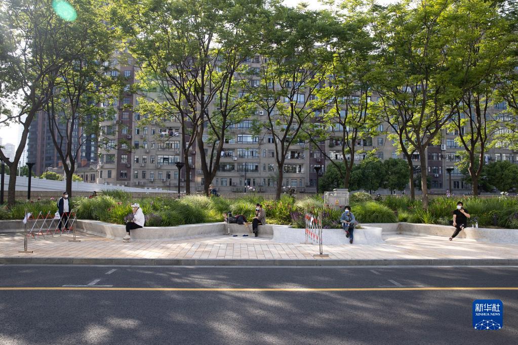 5月8日,在上海市黃浦區外灘街道北京里小區消殺期間,部分居民在臨時休息點休息。
