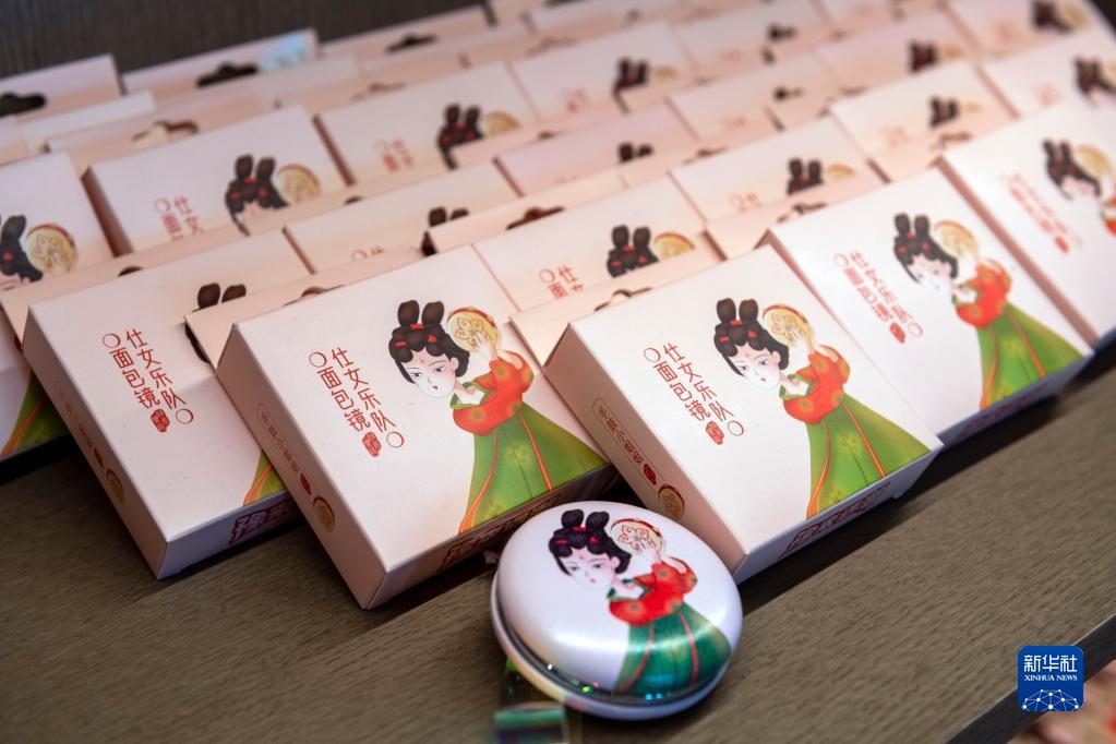 這是在河南博物院文創(chuàng)商店拍攝的“仕女樂隊”面包鏡(5月17日攝)。