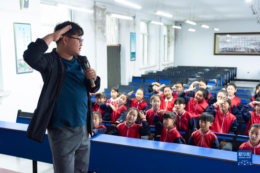 5月24日,在黑龍江省安達市任民鎮中心小學,張雨(前)給“村里的孩兒”音樂班的孩子講表演技巧。