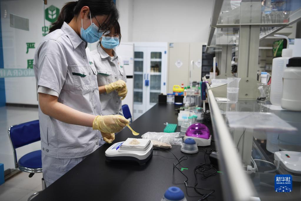 5月24日,在中央儲備糧鄧州直屬庫有限公司質檢室內,質檢員進行樣品嘔吐毒素檢測。