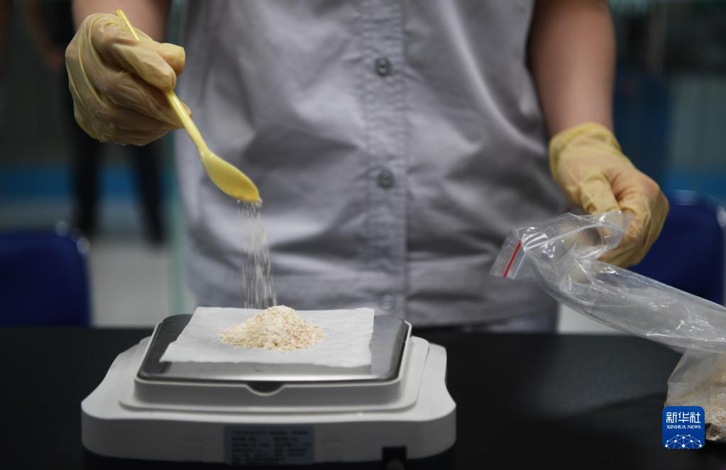 5月24日,在中央儲備糧鄧州直屬庫有限公司質(zhì)檢室內(nèi),質(zhì)檢員進行樣品嘔吐毒素檢測。