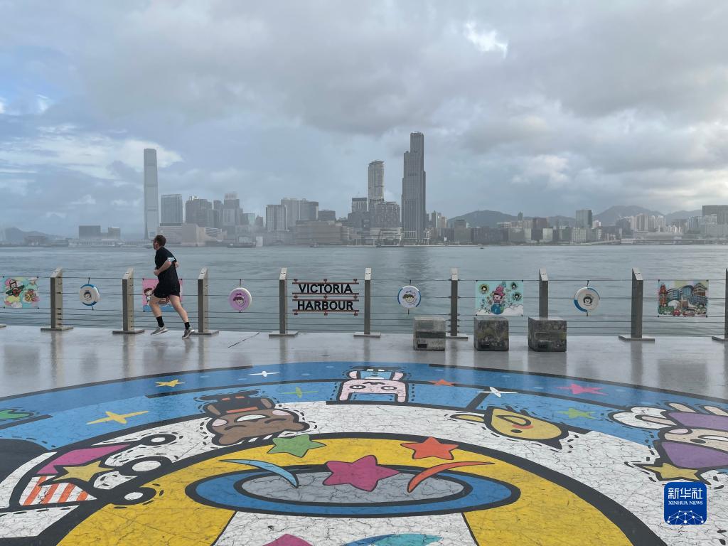 市民在維港岸邊晨練跑步(5月31日攝)。