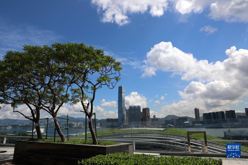 從香港國(guó)際金融中心二期的平臺(tái)對(duì)望環(huán)球貿(mào)易廣場(chǎng)(6月23日攝)。
