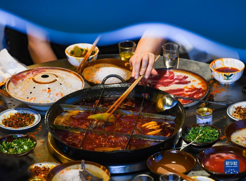 消費者在重慶九街有個單位文創街區一火鍋店內吃火鍋(6月5日攝)。