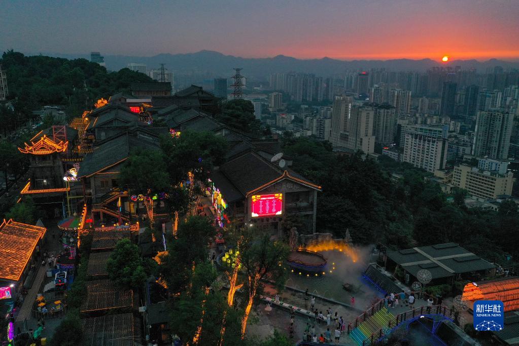 這是6月1日拍攝的重慶陶然居大觀園新國潮坊景象(無人機照片)。