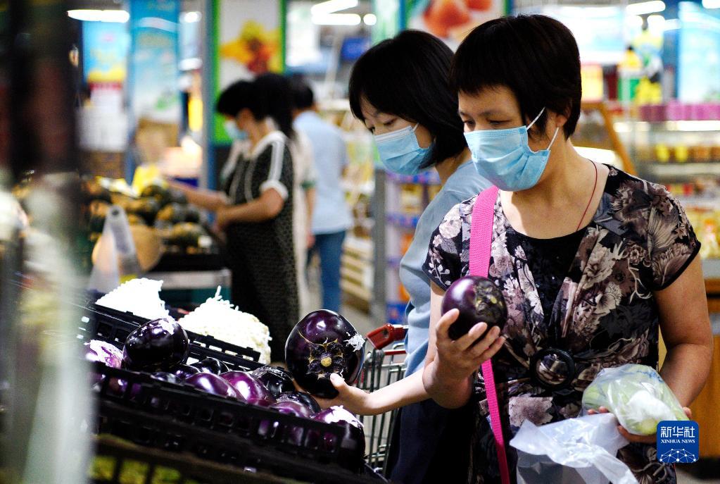 7月6日,市民在西安市未央區龍首北路一家超市內選購蔬菜。