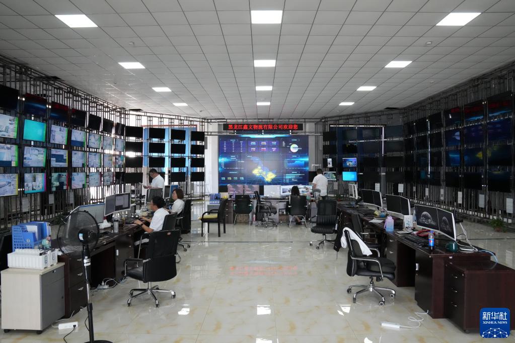 7月6日,在VC·產(chǎn)業(yè)園入駐企業(yè)黑龍江鑫文物流有限公司機(jī)房內(nèi),工作人員在作業(yè)中。新華社記者 王建威 攝