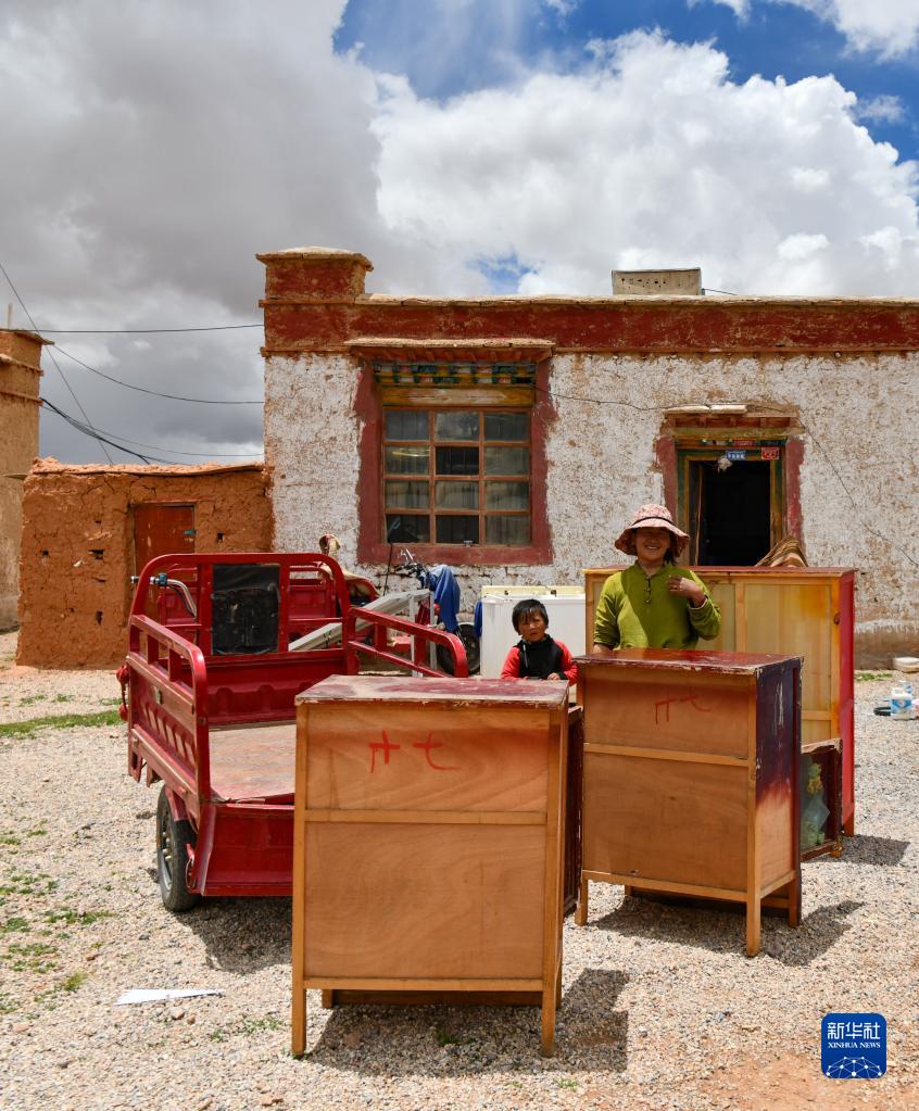 雙湖縣多瑪鄉(xiāng)果根擦曲村村民在搬運家具,準備搬遷(7月12日攝)。