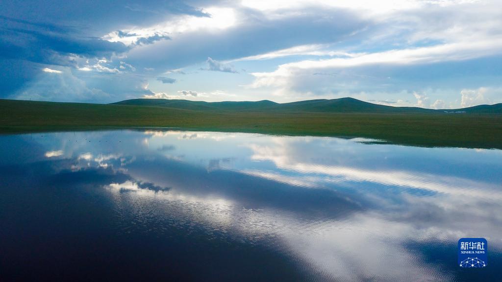 烏拉蓋草原上的湖泊(7月20日攝,無人機照片)。