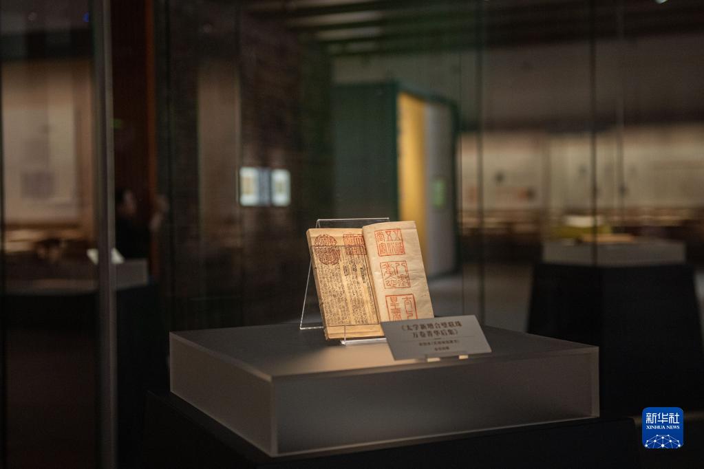 這是7月30日在中國國家版本館杭州分館拍攝的展出古籍。
