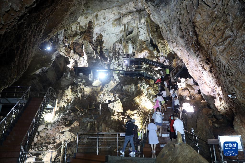 8月3日,游客在興隆溶洞內(nèi)參觀游玩。