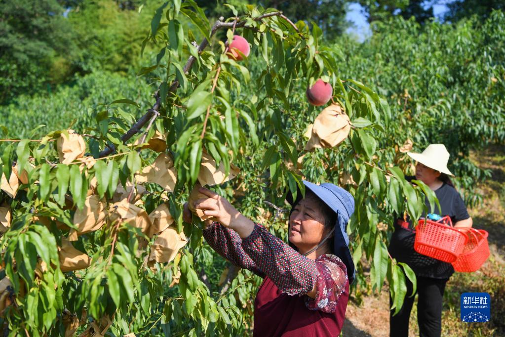 8月3日,重慶市萬州區恒合土家族鄉鴻鳳村村民在采摘桃子。